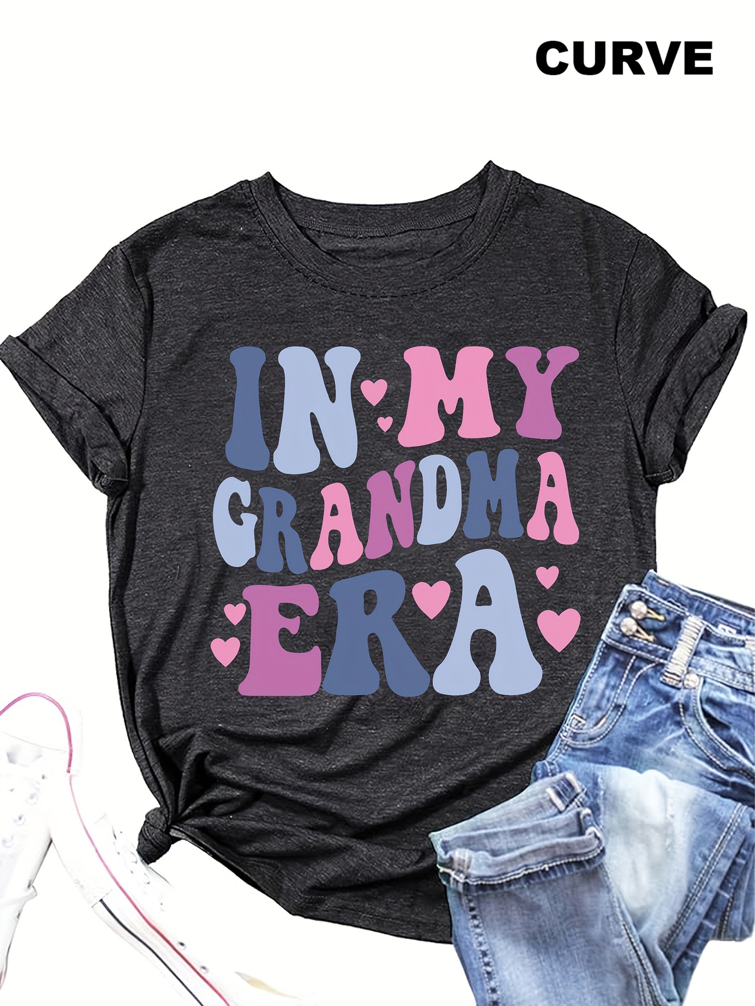 1pc Women'S Casual Crew Neck T-Shirt with Geometric Pattern, Rayon/Viscose Blend, Slight Stretch, All-Season Knit Fabric, "In My Grandma Era" Lettering Design, Short Sleeve Tee for Valentine'S Day and Back to School