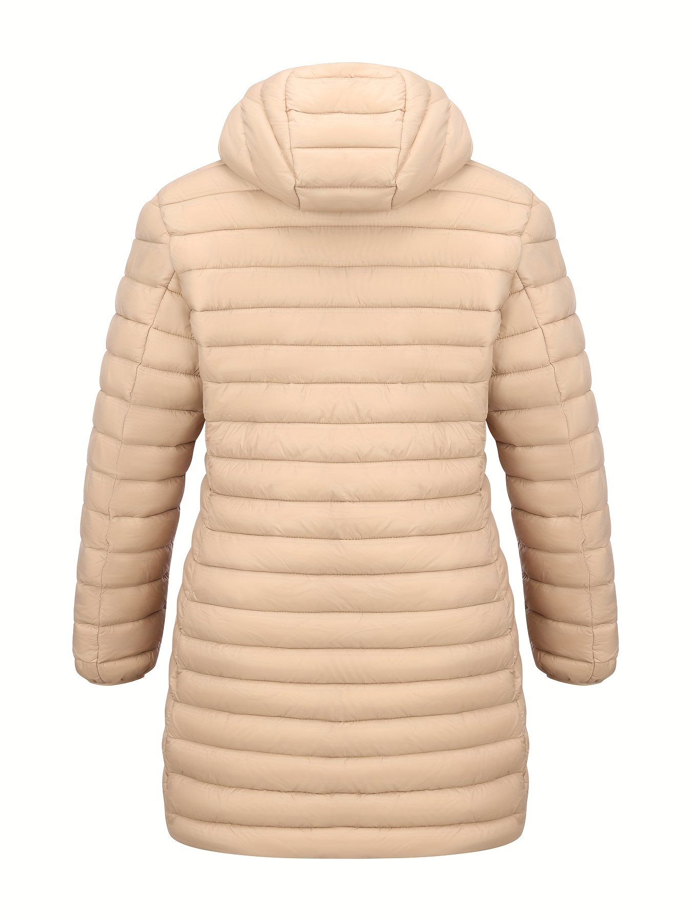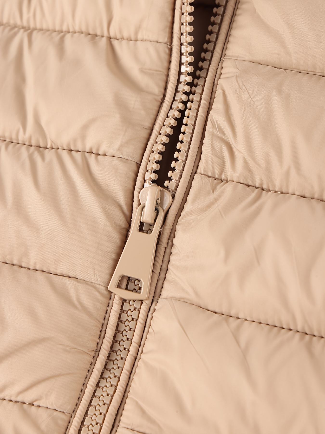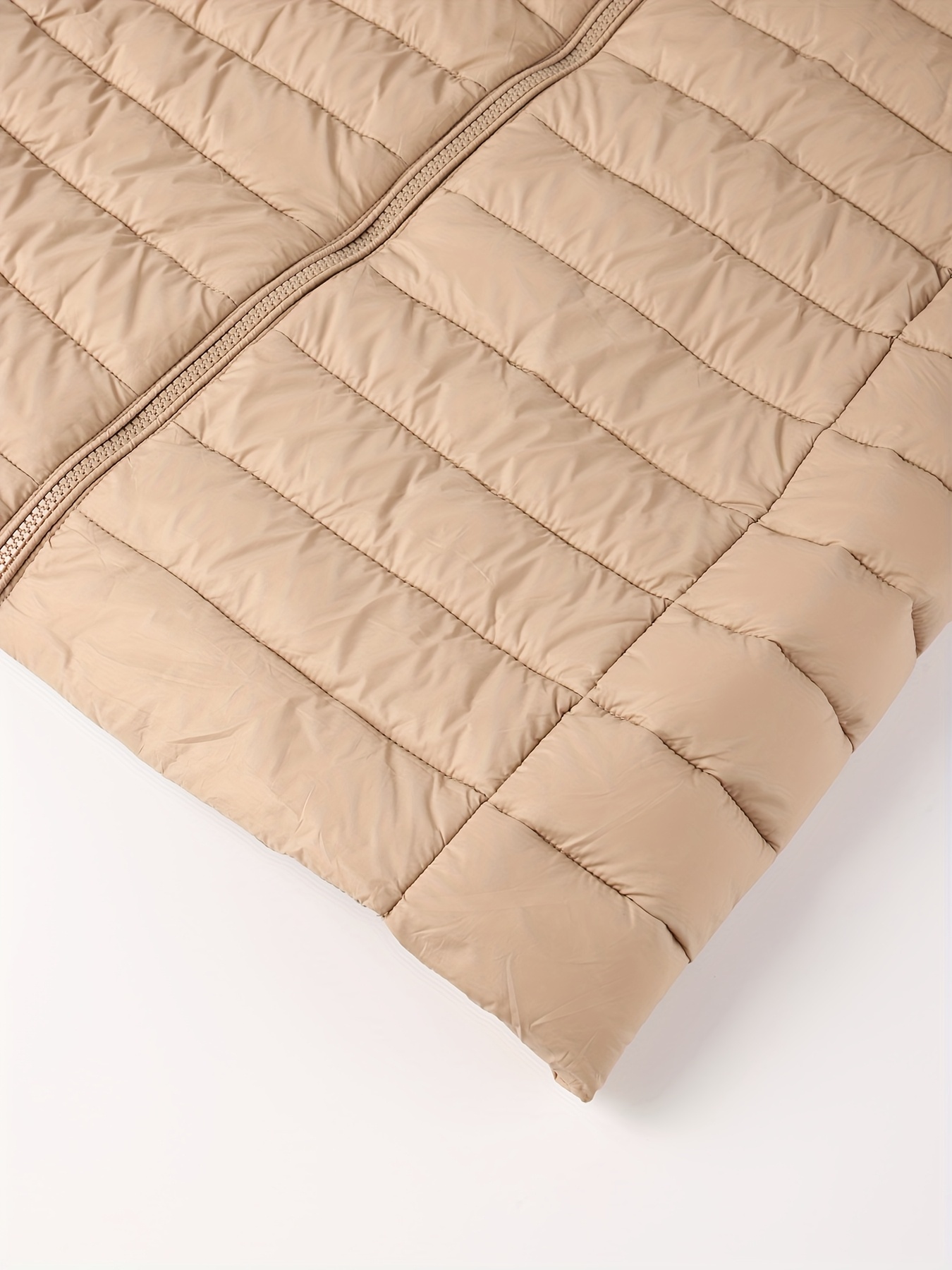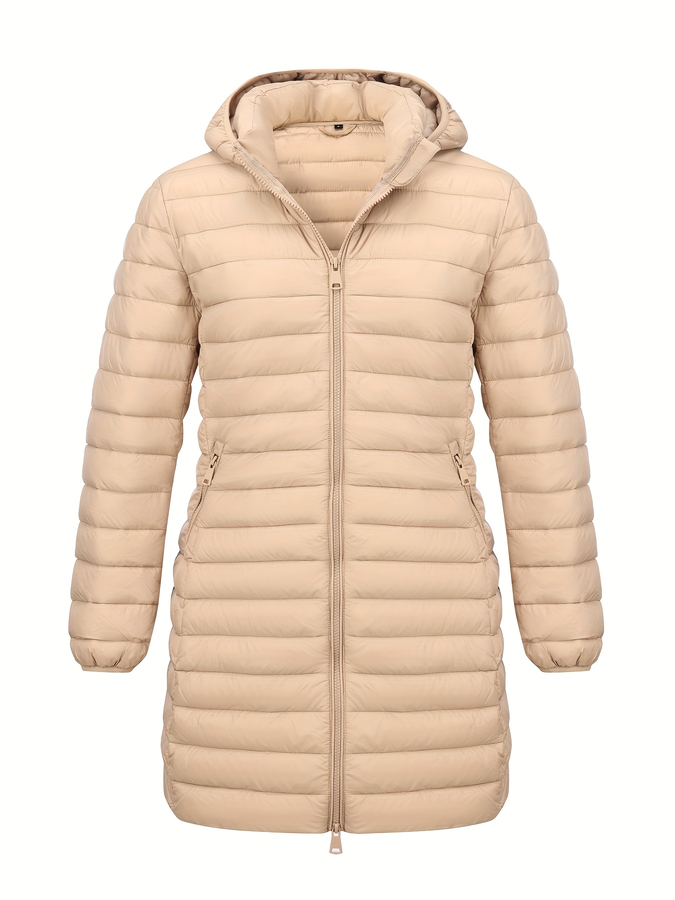 [Chic Beige Coat] Elegant Chic Beige Lightweight Nylon Women's Mid-Length Coat | Regular Fit Zipper Front for Commuting & Casual Outings