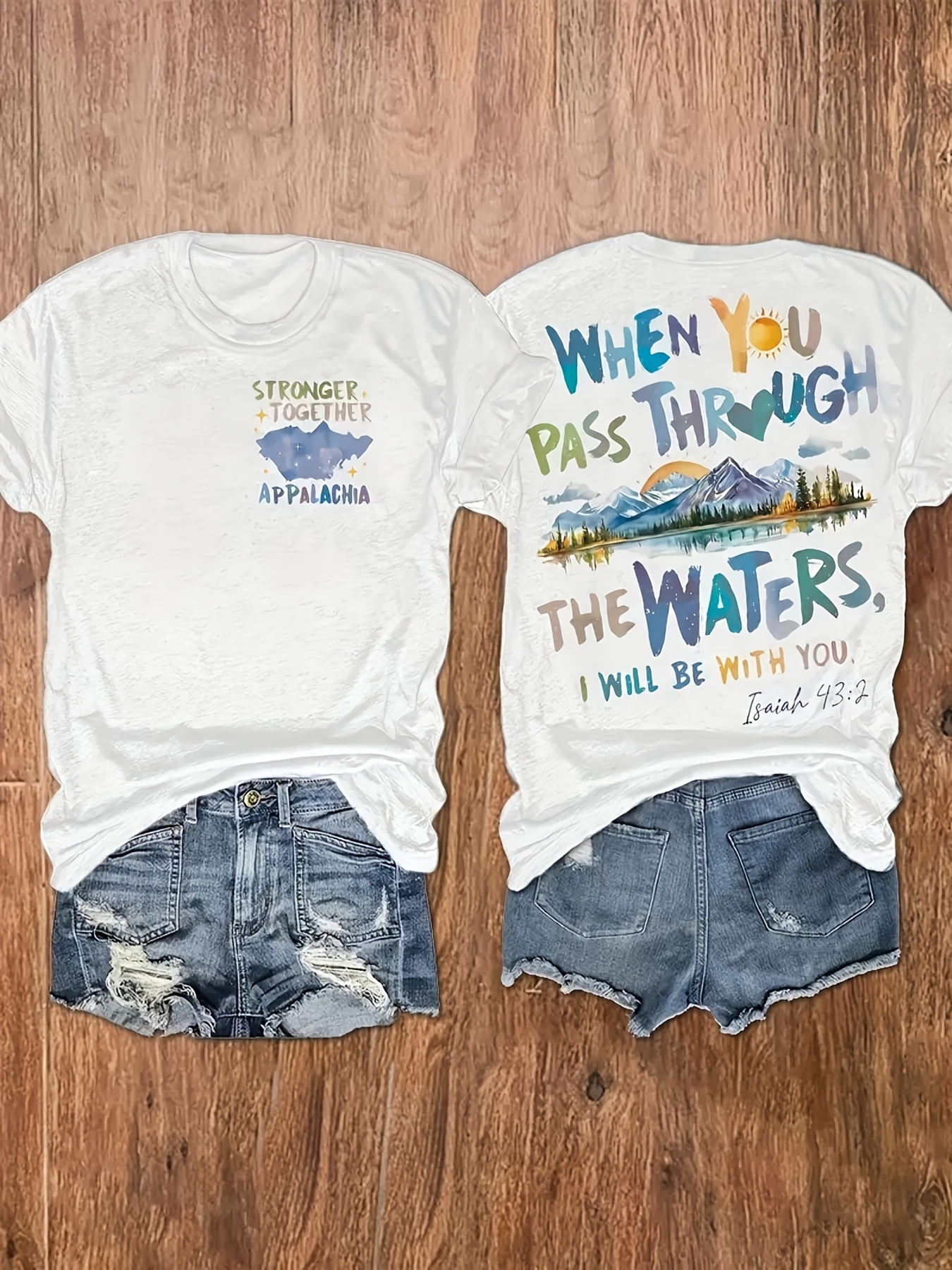 WHENYOU Women's Plus Size Inspirational Graphic T-Shirt - Joshua 1:9 Quote & Mountain Design, 100% Polyester Stretchy Crew Neck Casual Top, Lightweight 180gsm Machine Washable All-Season Tee