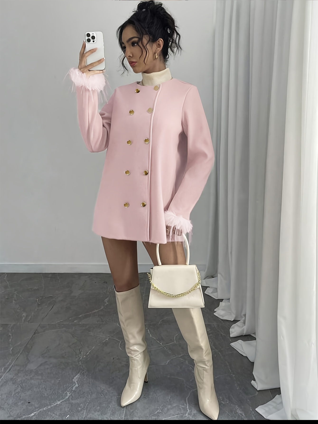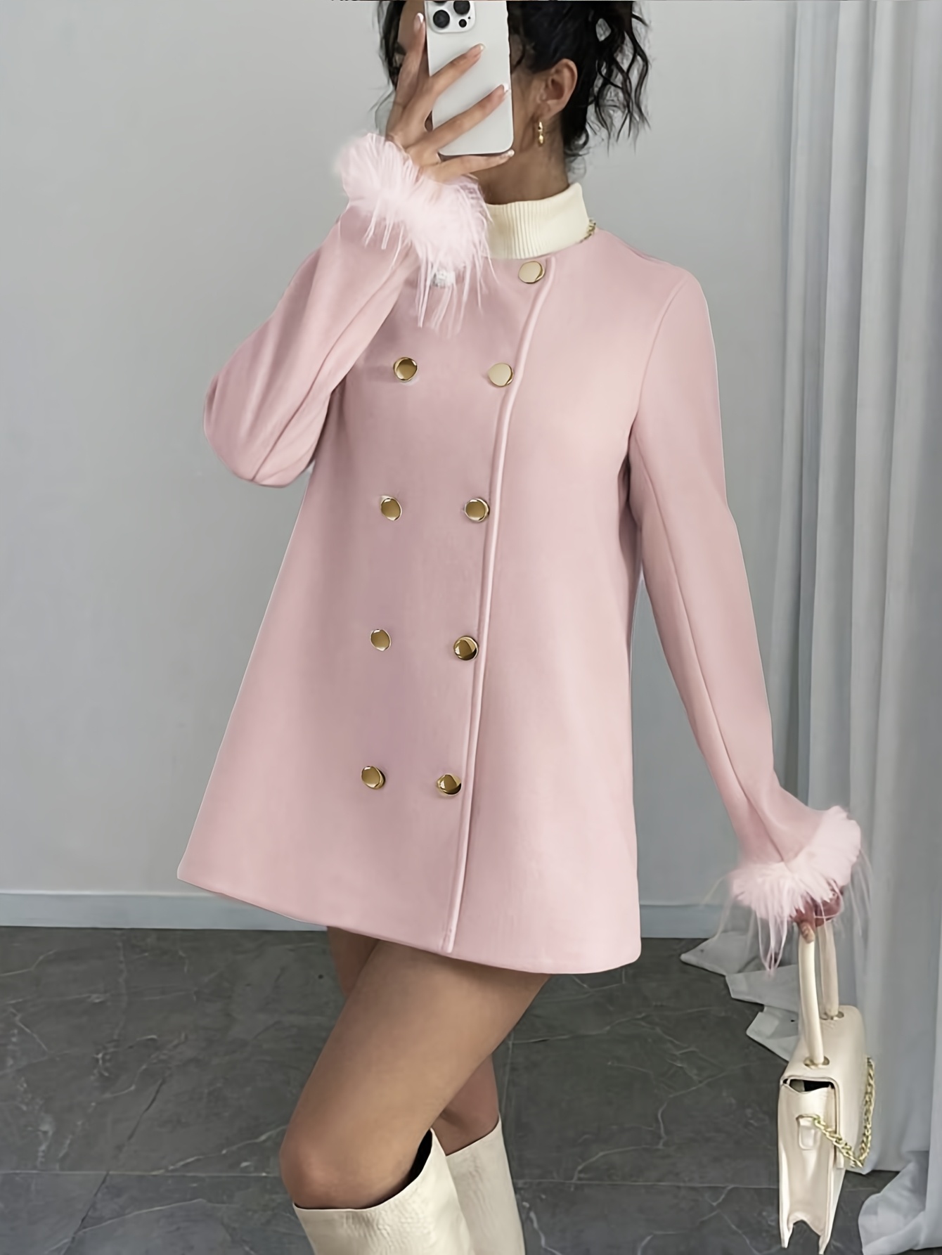 New Women's Elegant Tweed Coat - Chic Button Front Long Sleeve Coat with Structured Fit, Machine Washable Solid Color Outerwear for Fall Winter