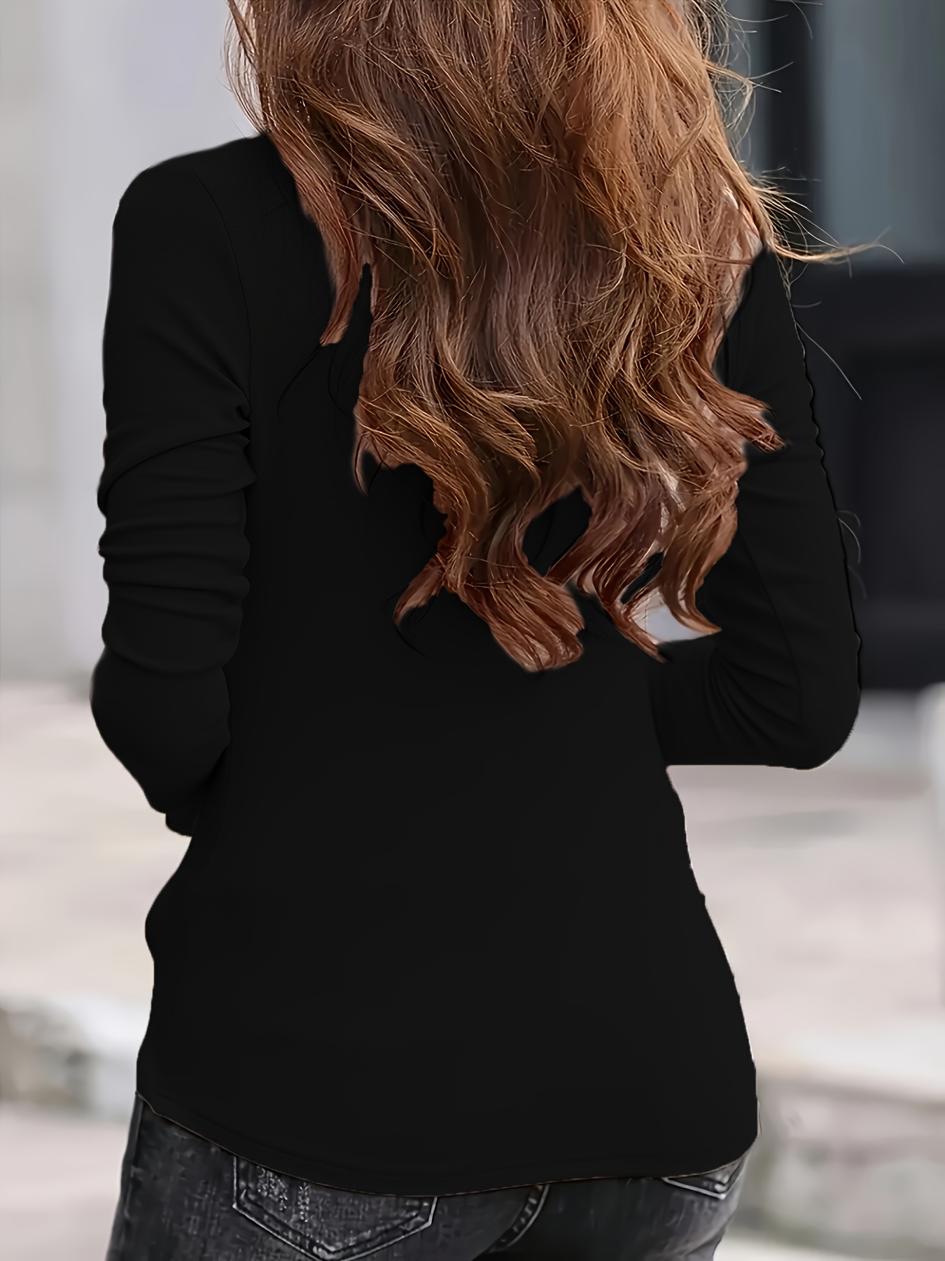 Plus Size - Plus Size - Women'S Plus Size Casual High Neck Long Sleeve Top Set - 3pcs, Solid Color, Medium Stretch, Vacation Style, Fall/Winter Collection, Casual Attire|Vacation Style|Stretchy Fabric