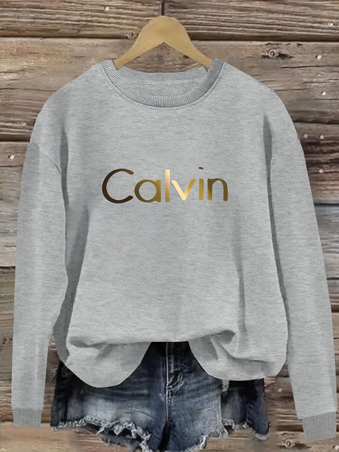 Plus Size - Women'S "Calvin" Printed Sweatshirt - Cozy Green Pullover with Ribbed Collar & Sleeves, Casual Fall & Winter Top, Casual Wear|Graphic Sweatshirt|Comfortable Fit, Sweater Hoodie