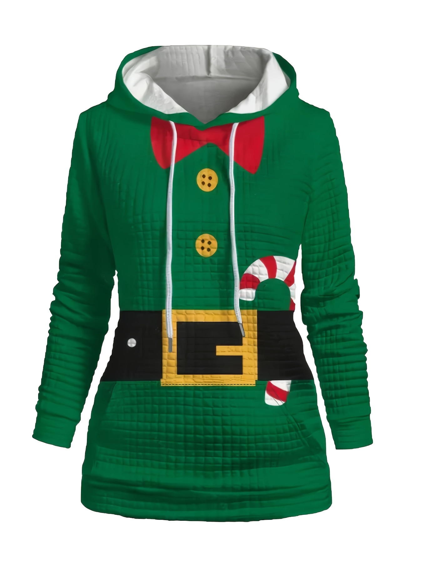 Plus Size - Women'S Festive Christmas Hoodie - Cozy Long Sleeve Pullover with Santa & Candy Cane Design, Green, Casual Holiday Sweatshirt for Cold Weather, Christmas Clothes