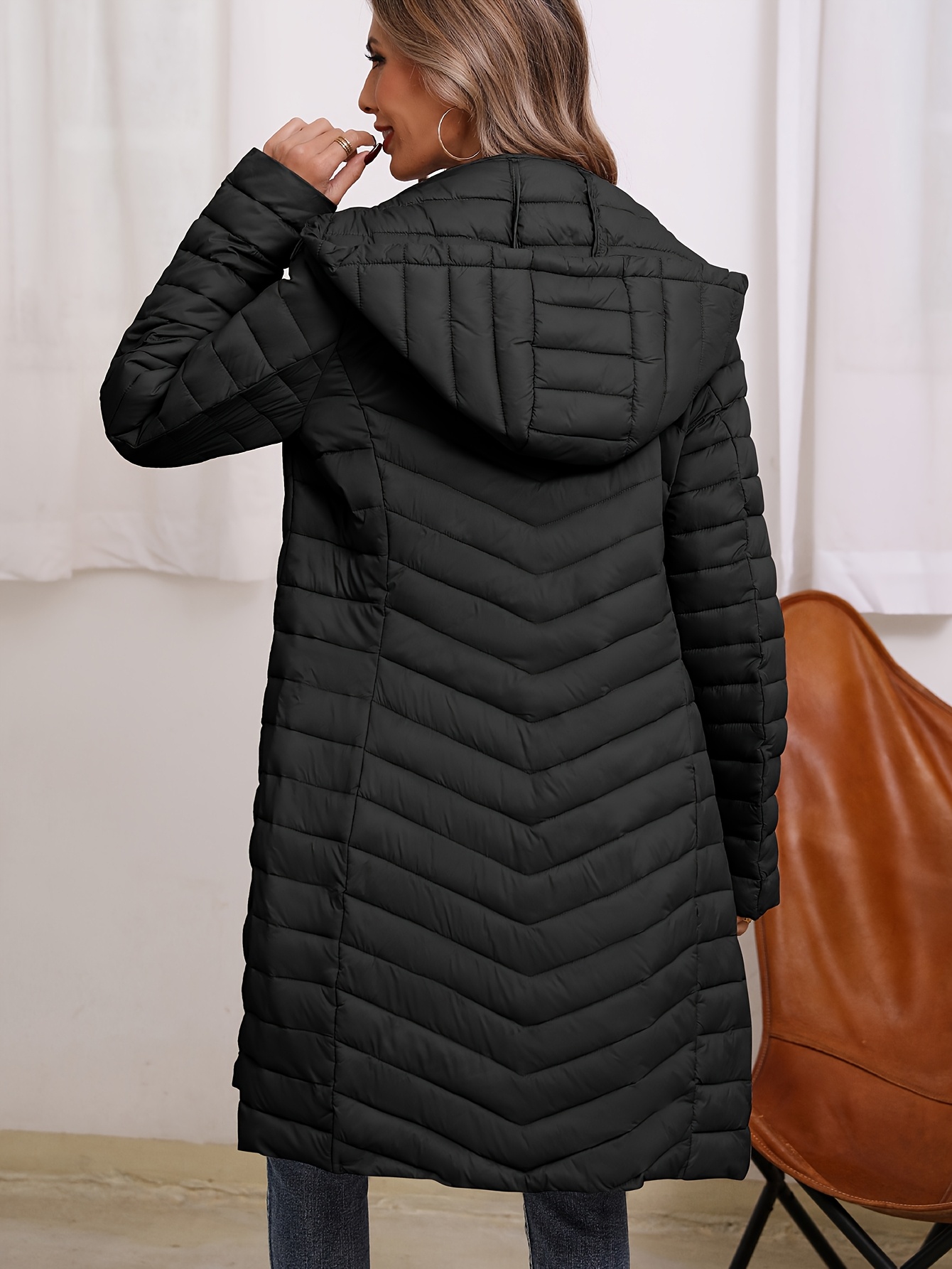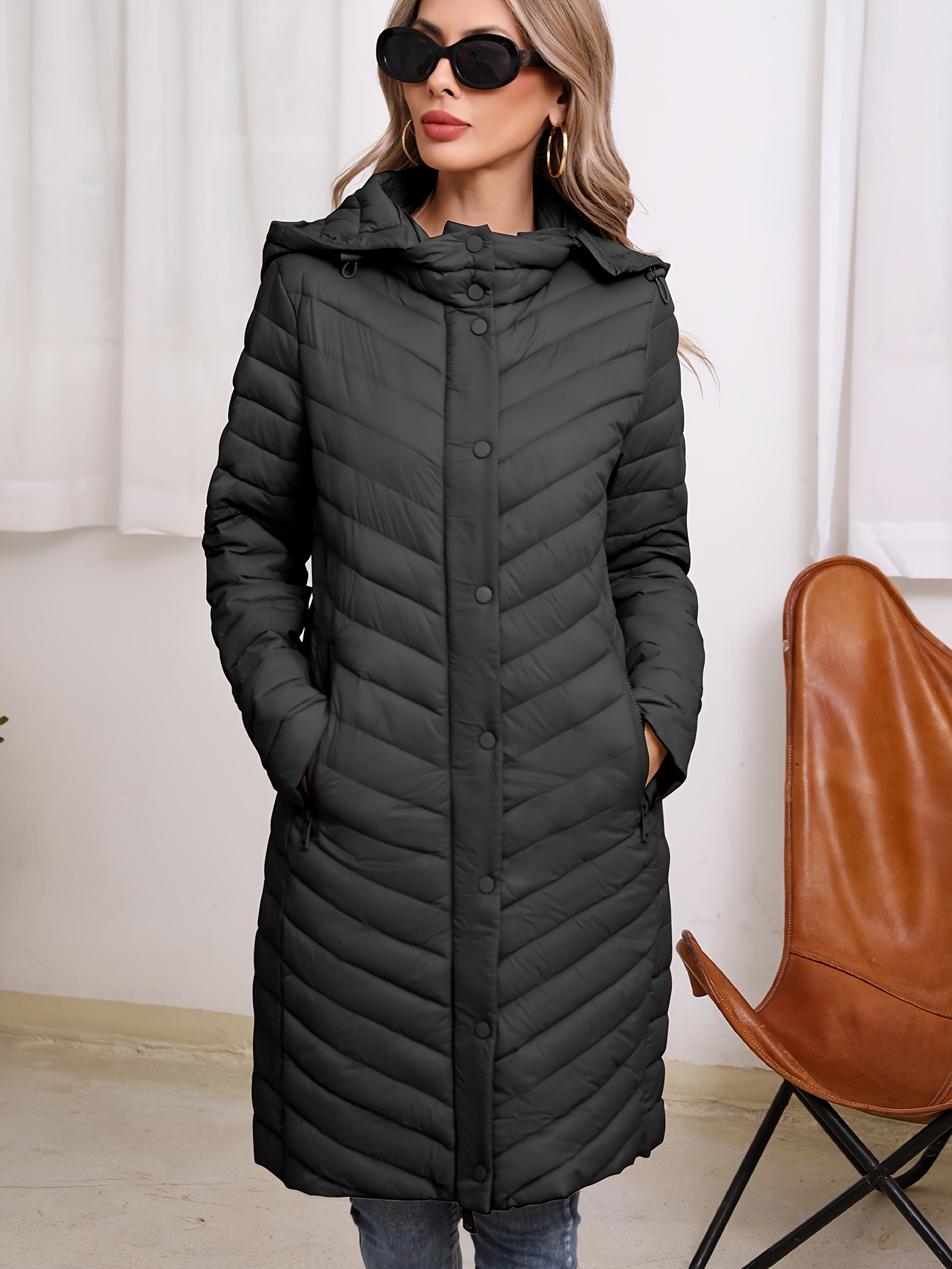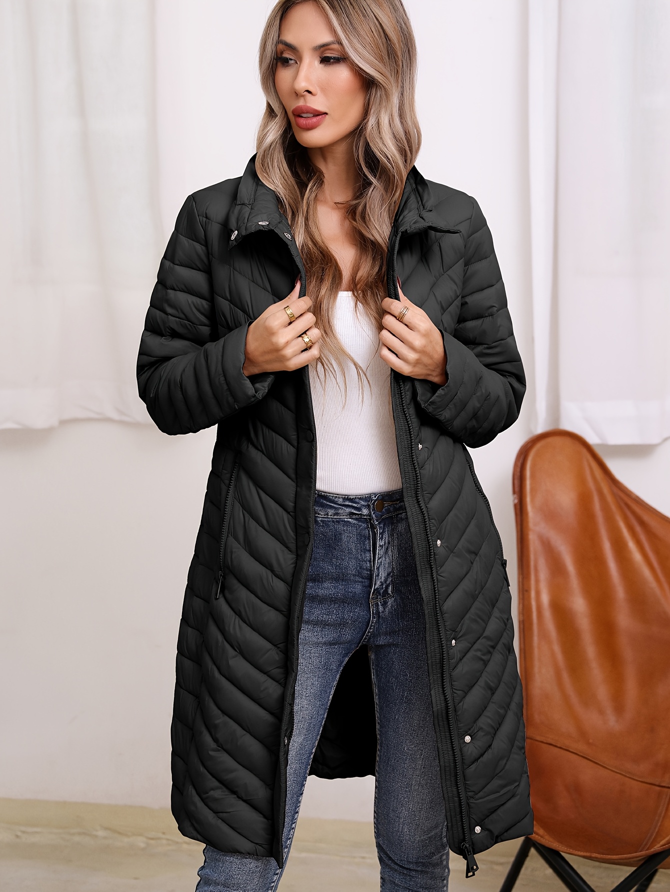 Women'S Lightweight Long Winter Coat - Warm Padded Zipper Front, Elegant Solid Color, Regular Fit Long Sleeve Coat for Daily Casual Comfort & Formal Occasions, Winter Coats, Seasonal Fashion, Sophisticated Style, Cozy Fabric