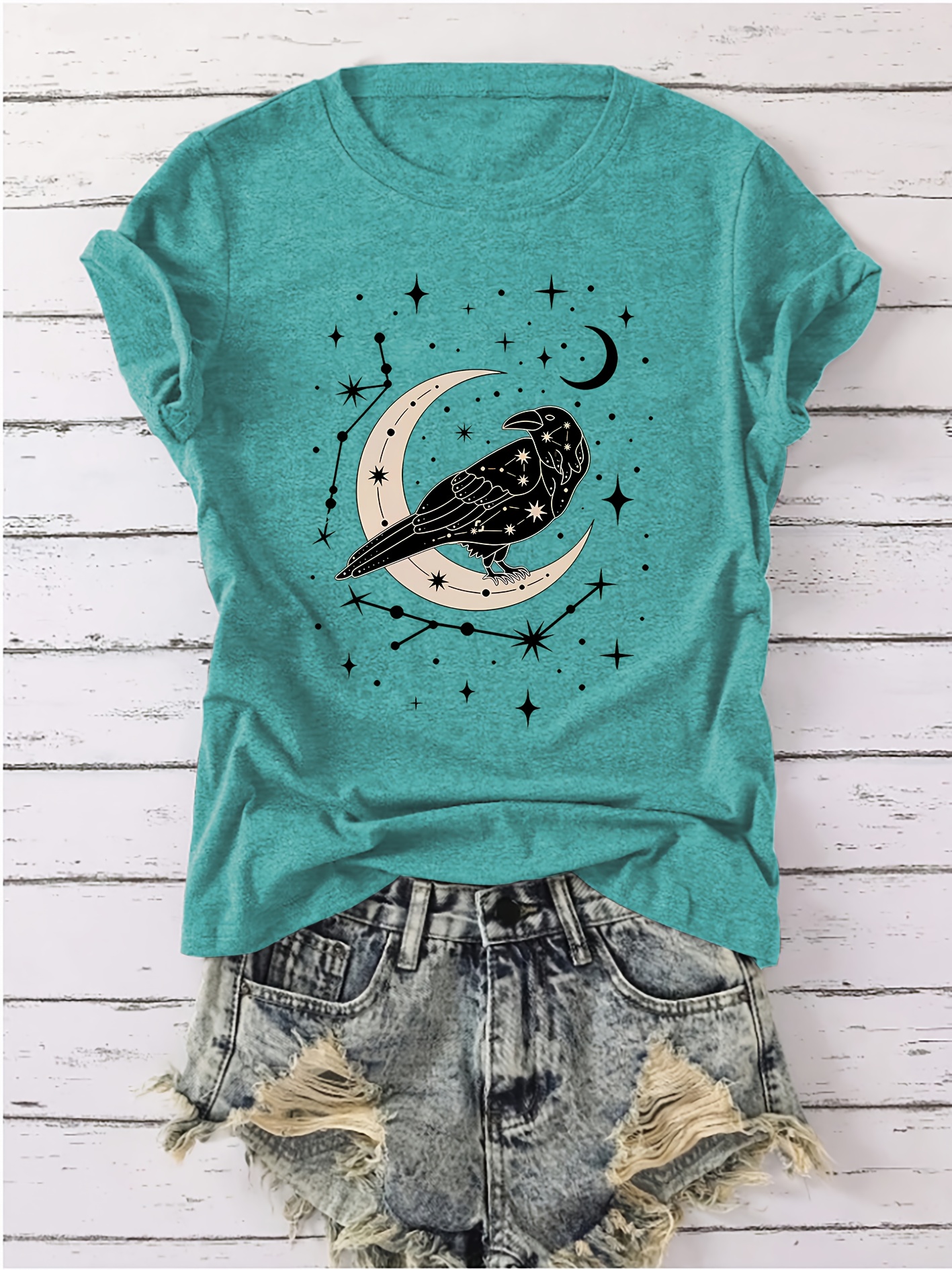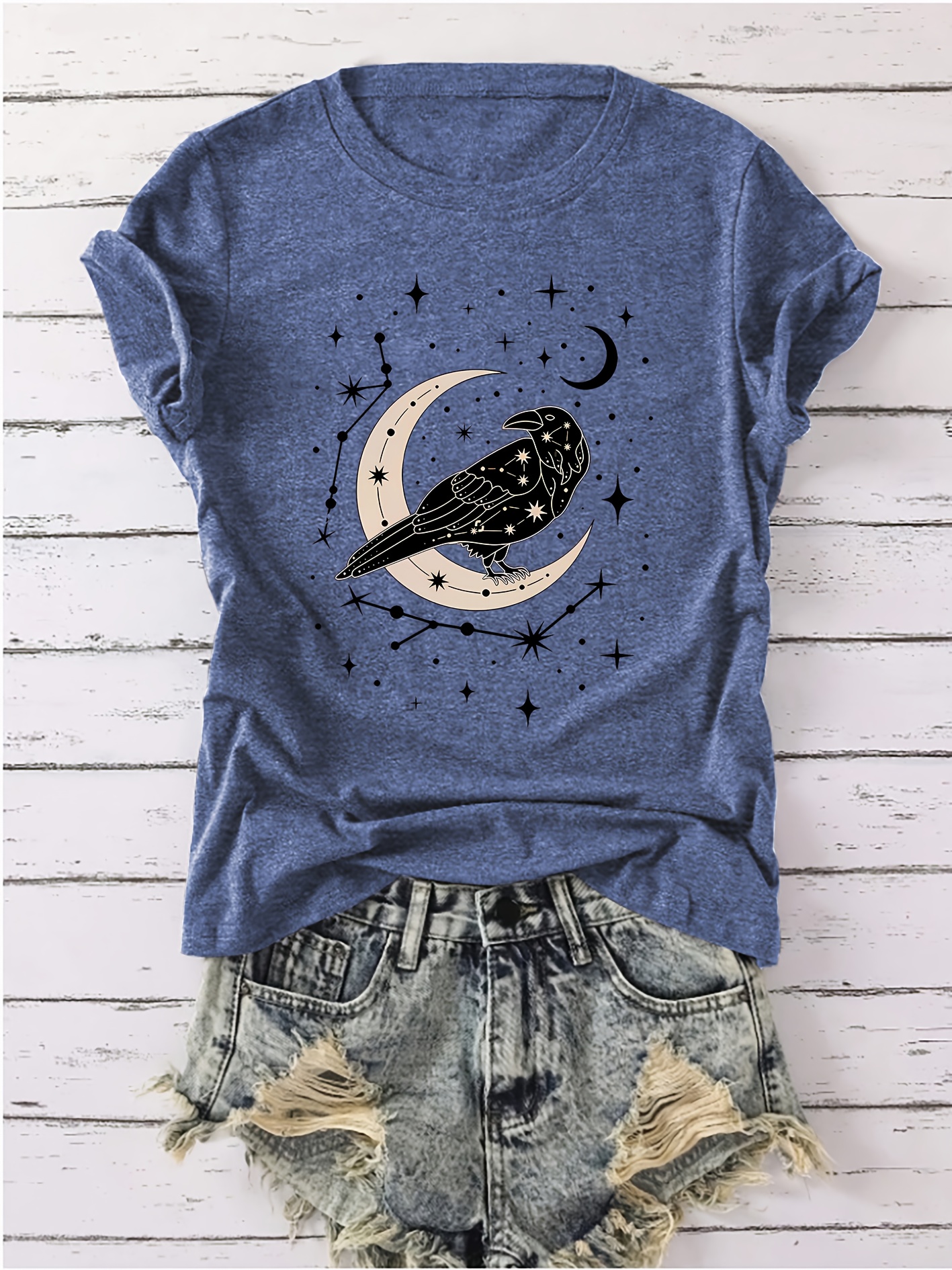 Women'S Vintage Gothic T-Shirt - Soft Pink Pastel Tee with Crow & Crescent Moon Graphic - Everyday & Special Occasion Top - Sizes S-XXL - Casual Gothic Apparel for Women, Goth T Shirt, Allseason Clothing, Comfortable Fit Shirt